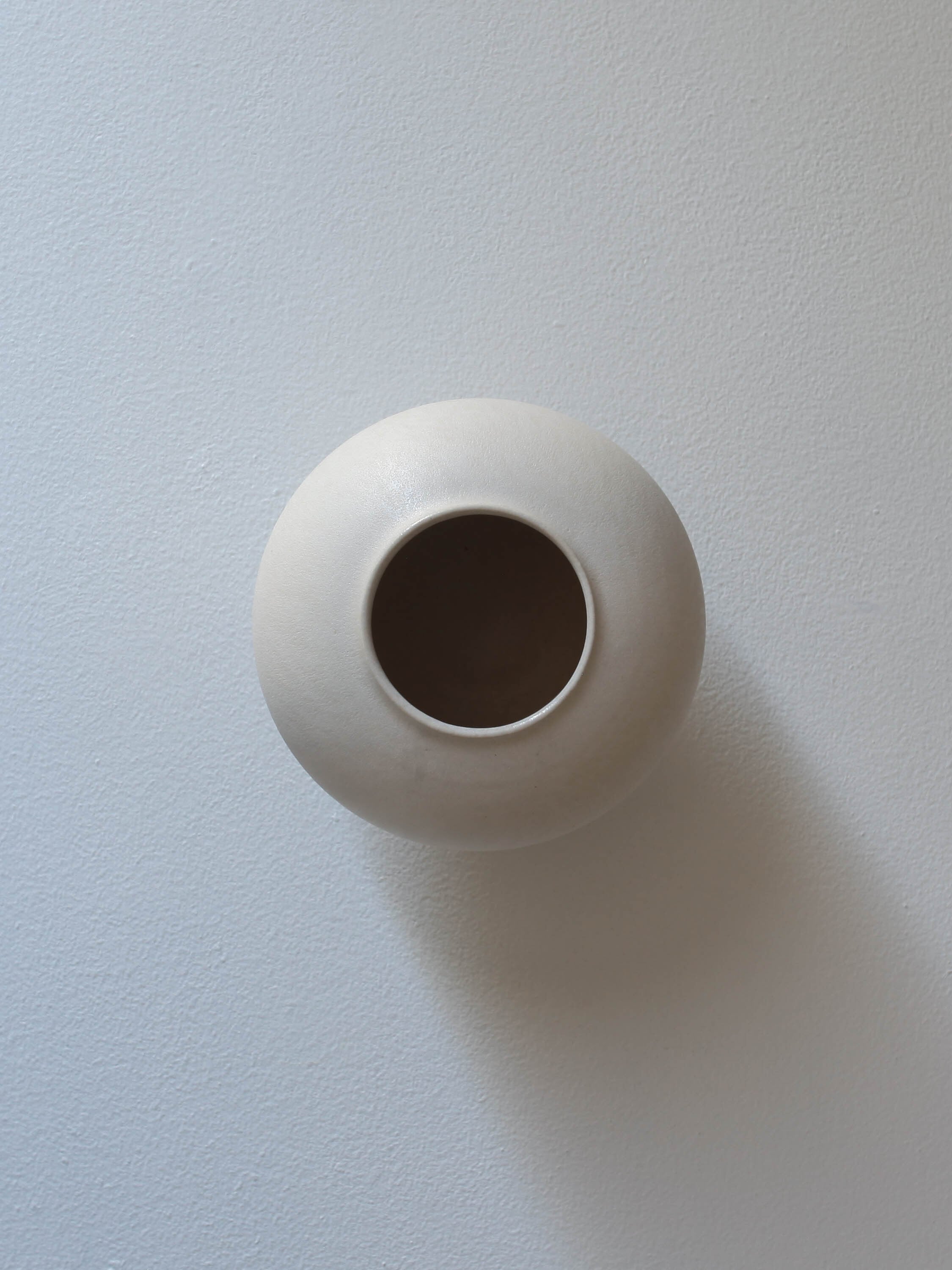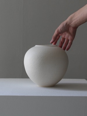 端正に整えられた造形と白い余白の中に、土と親しんだ手の跡や土本来の色質感が残されています。作品全体が白いベールに覆われたように、その内側の要素は織りなされ、ひとつひとつが特徴的な “姿” を生み出しています。