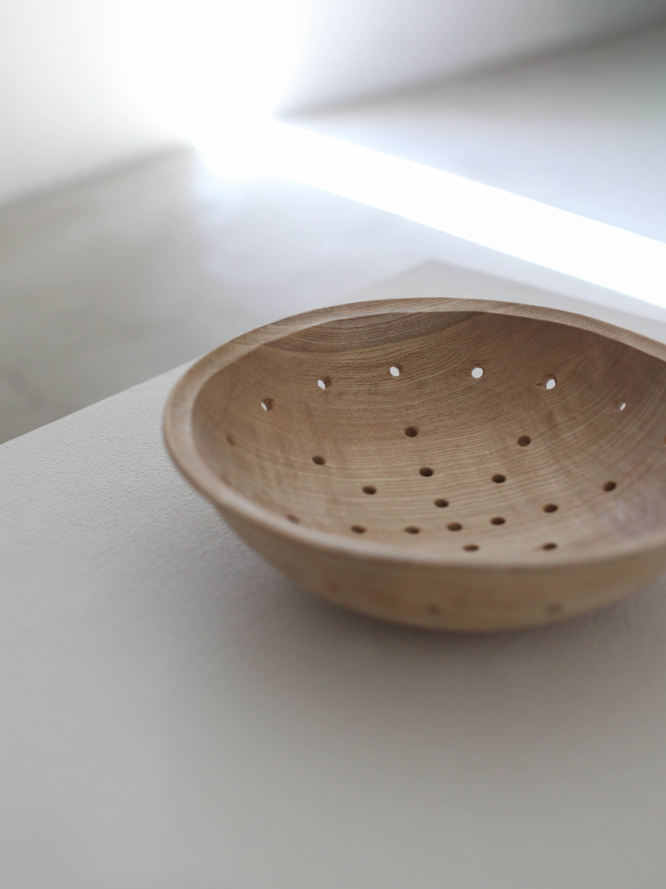 実用的な水切りボウルとしても使えそうですが、手作業による綺麗な穴や木目を見ているとそれ以上の心地良さを感じます。
