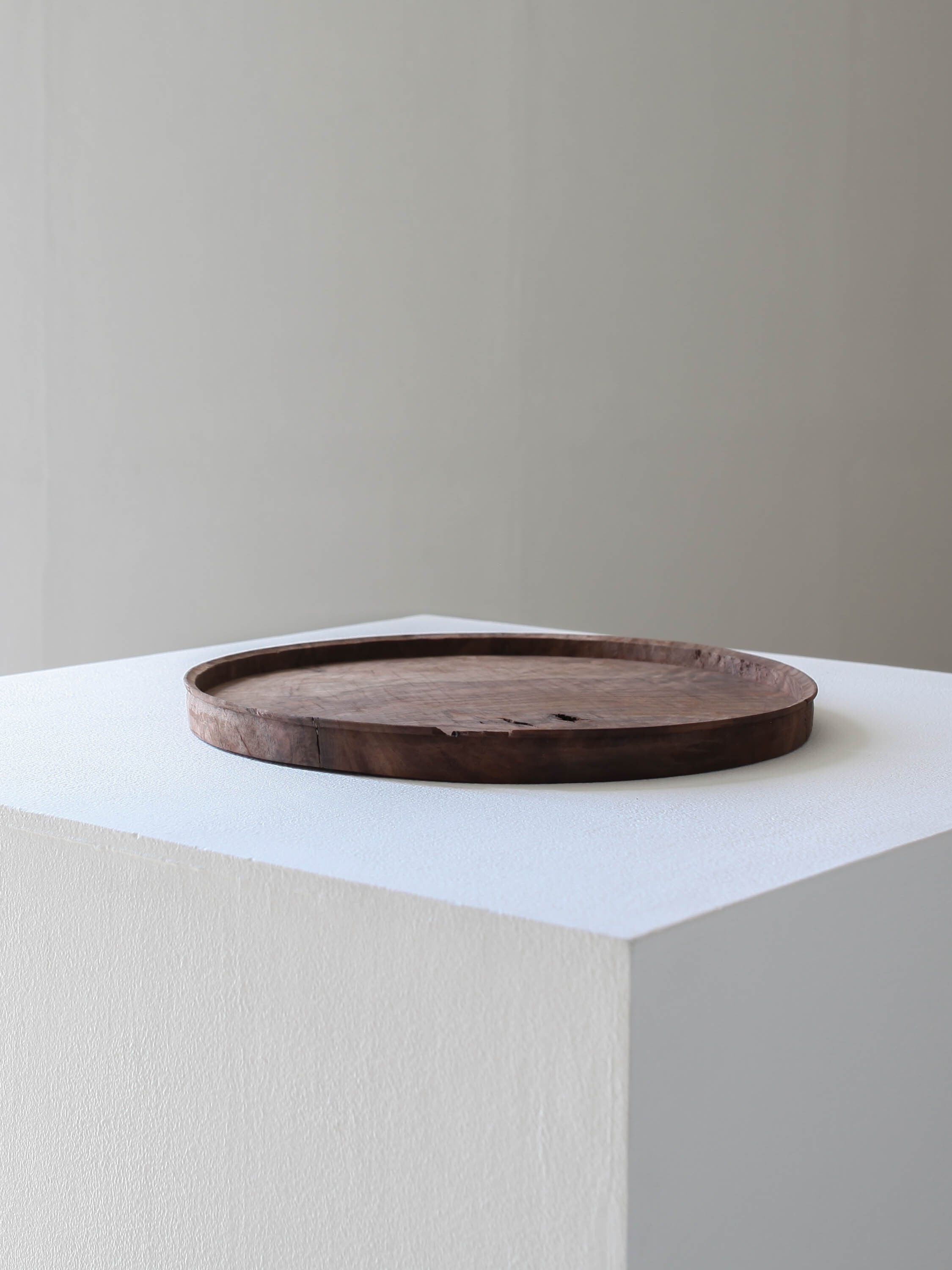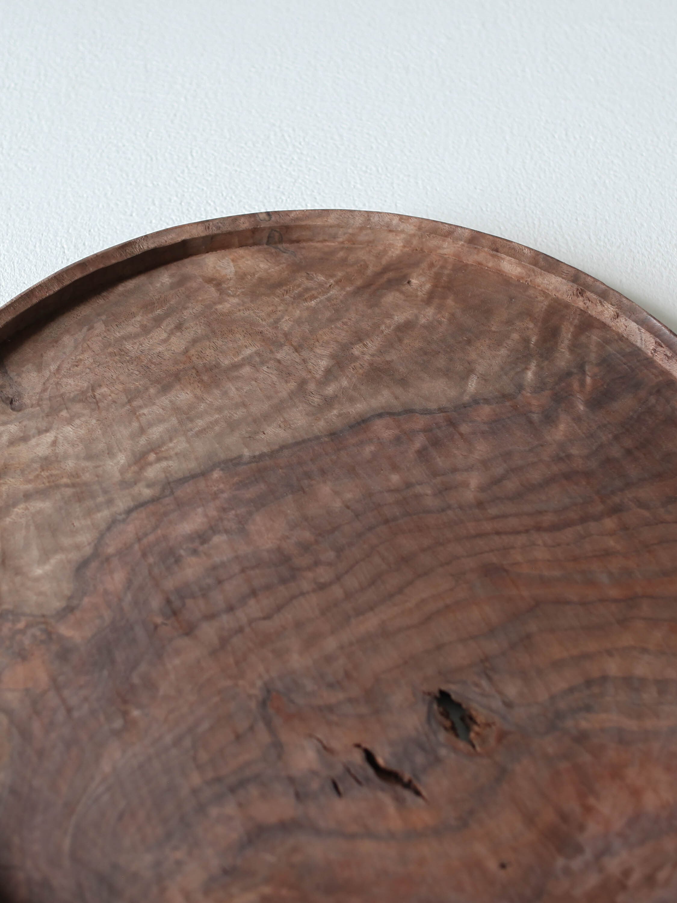 10年前に気に入り購入したと言うウォルナットの木にできた丸いコブから削り出された作品です。