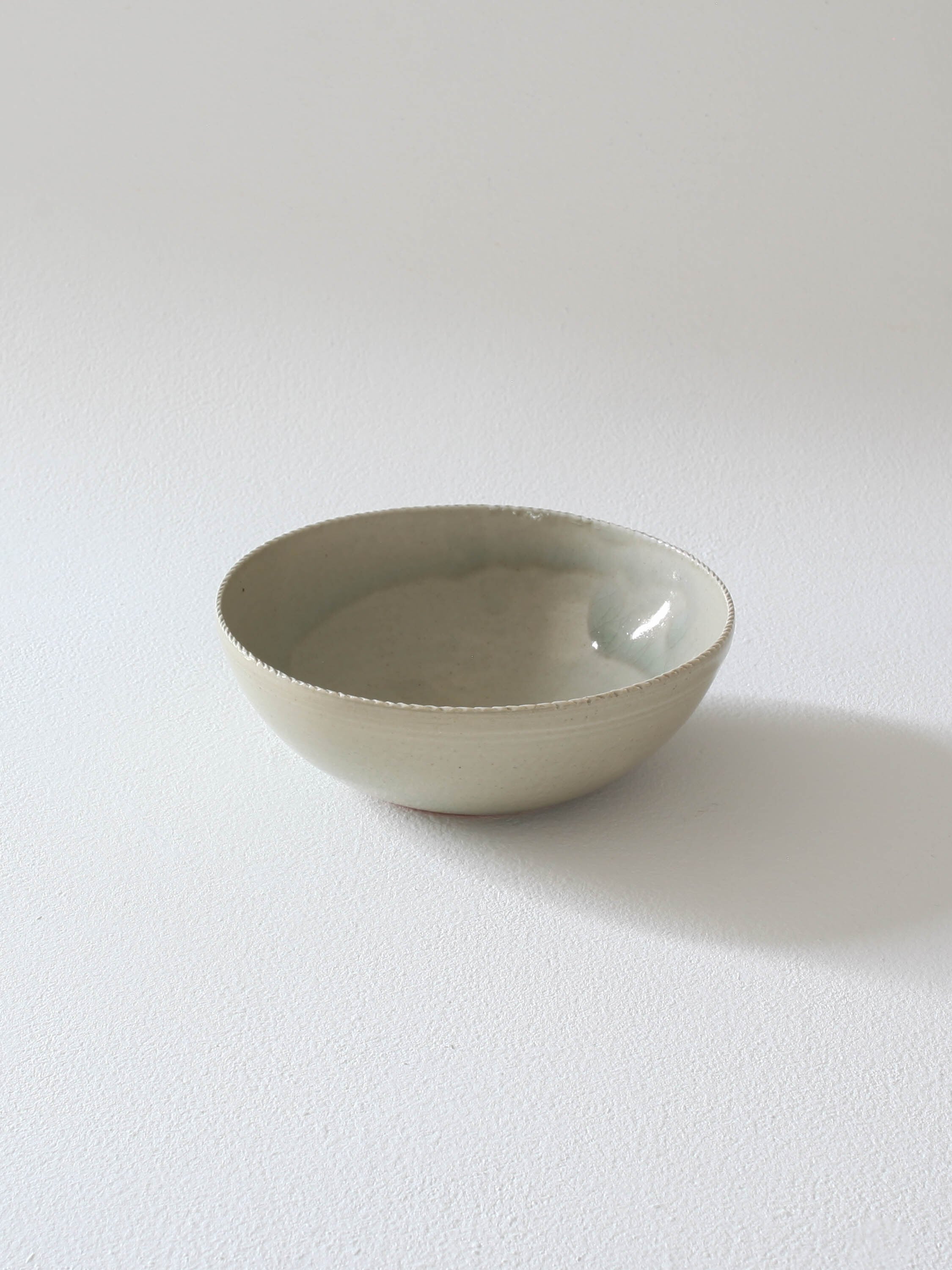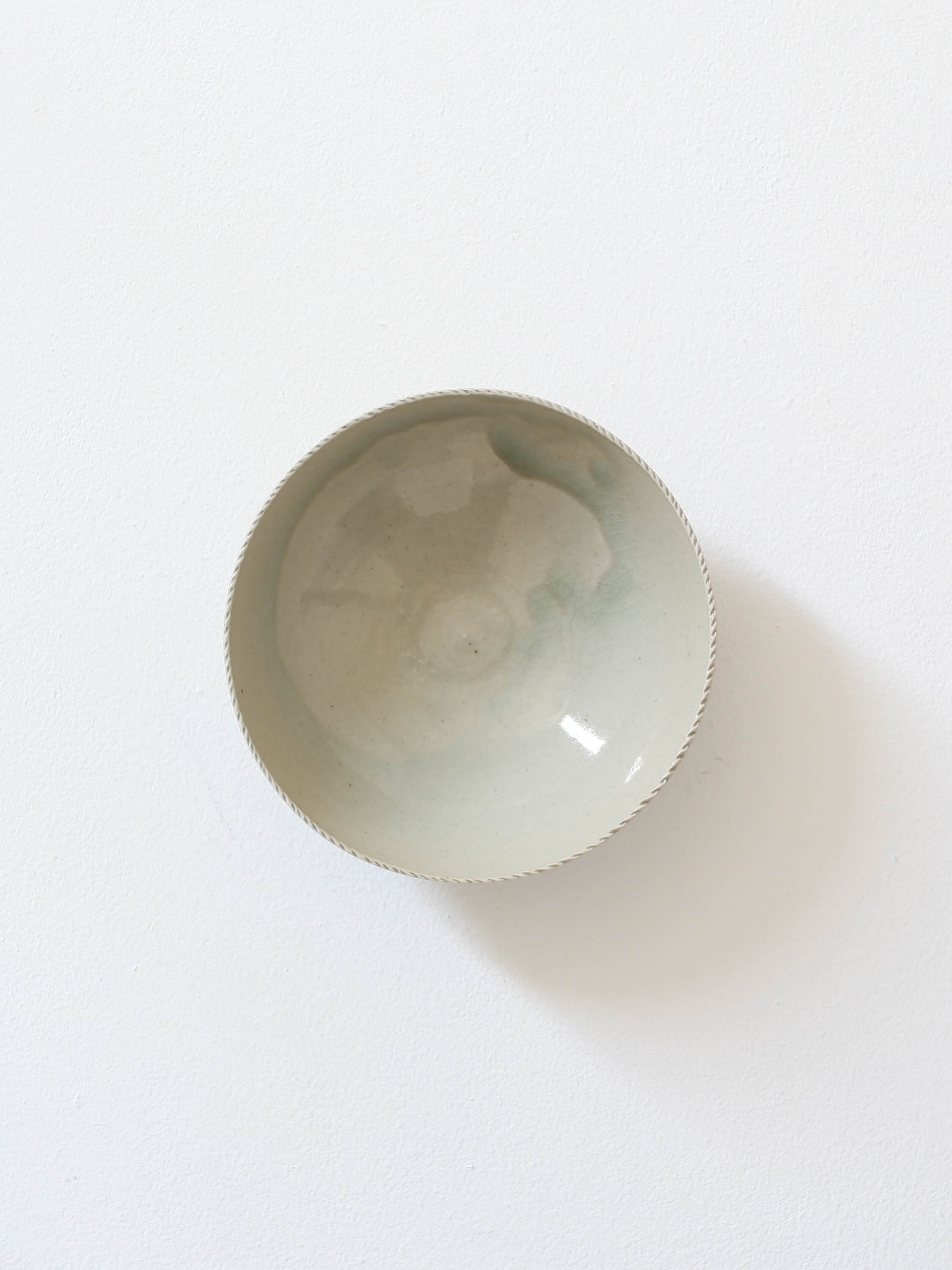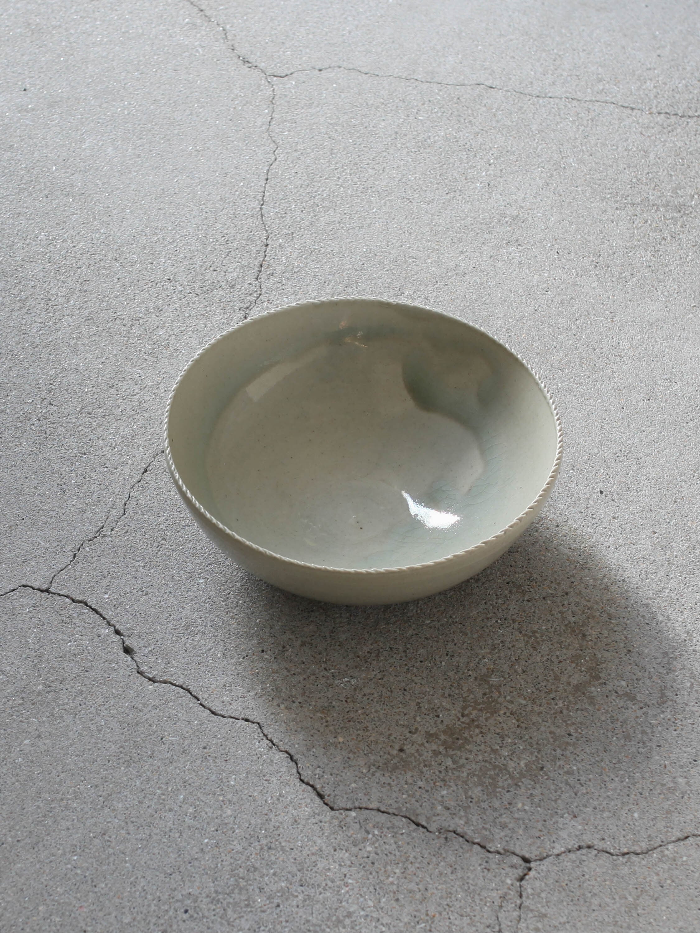樫の木の灰から作る青磁の釉薬を厚く掛け、二度焼することで、上品かつ変化のある釉薬の景色が生まれた作品です。