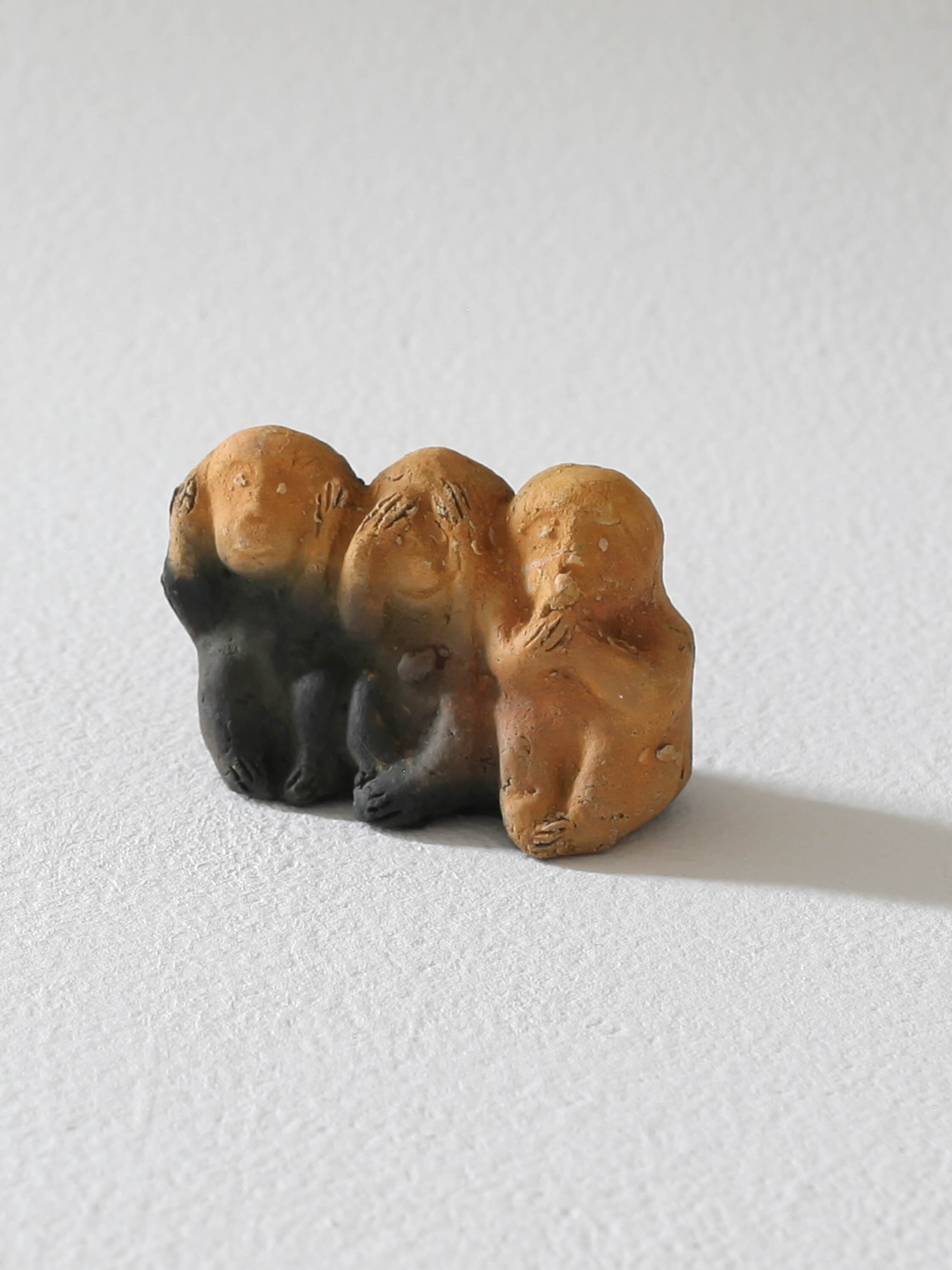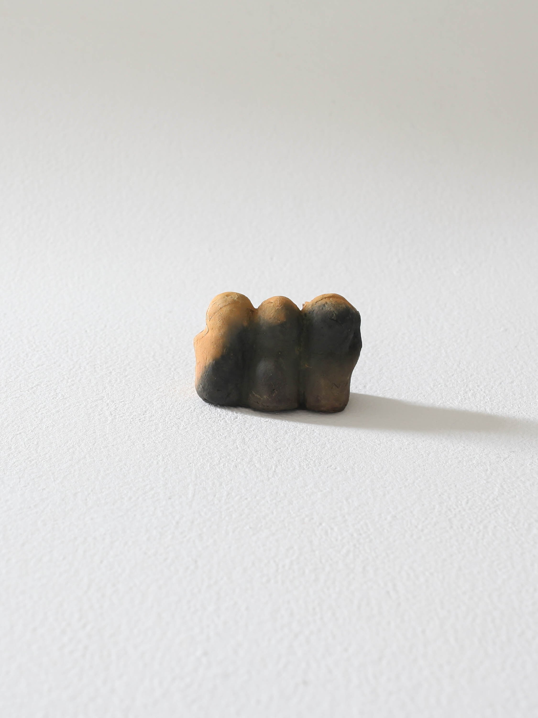 安齋さんが自らの手で掘った原土で形作り、野焼きした作品です。