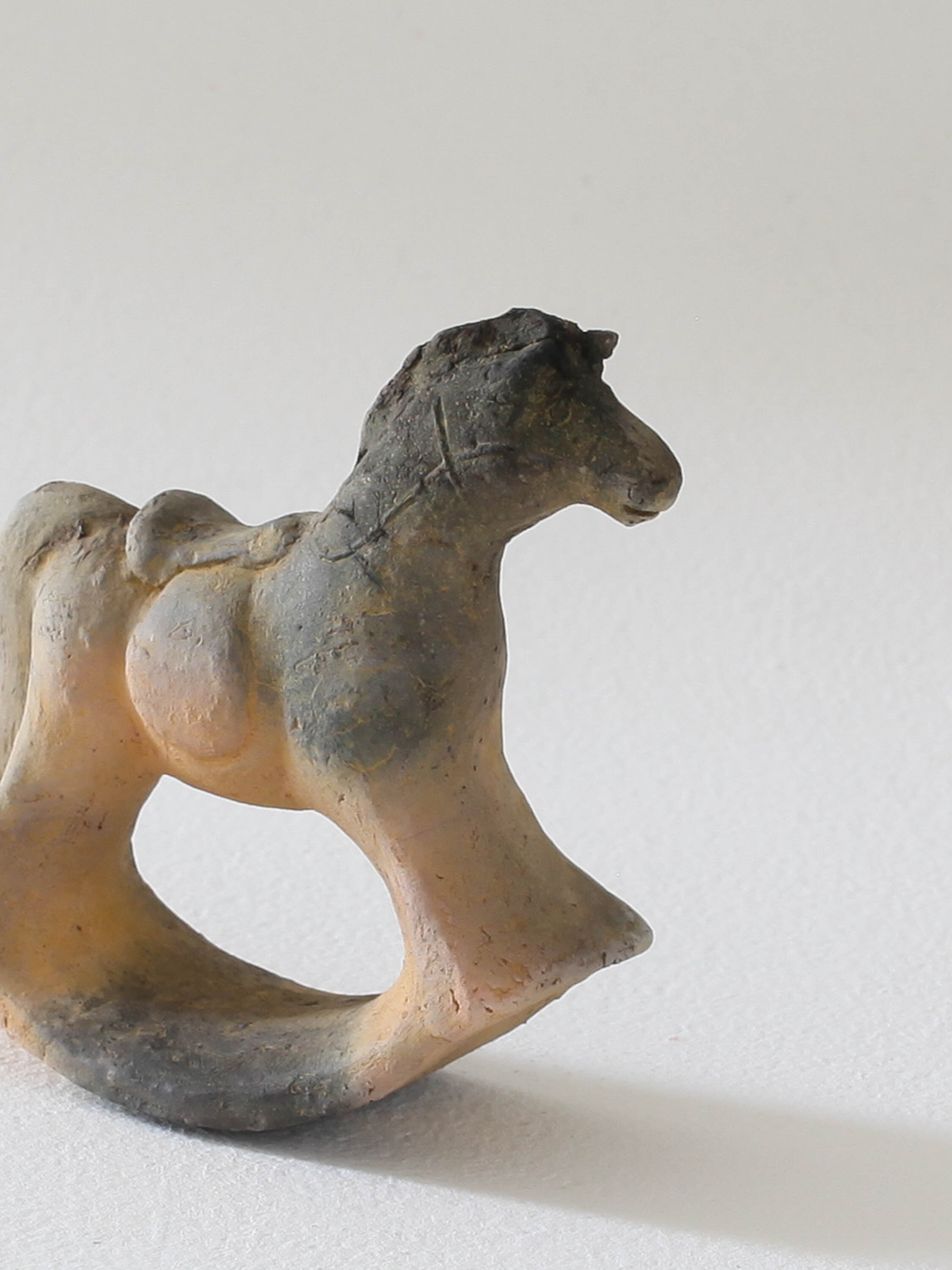 安齋さんが自らの手で掘った原土で形作り、野焼きした作品です。