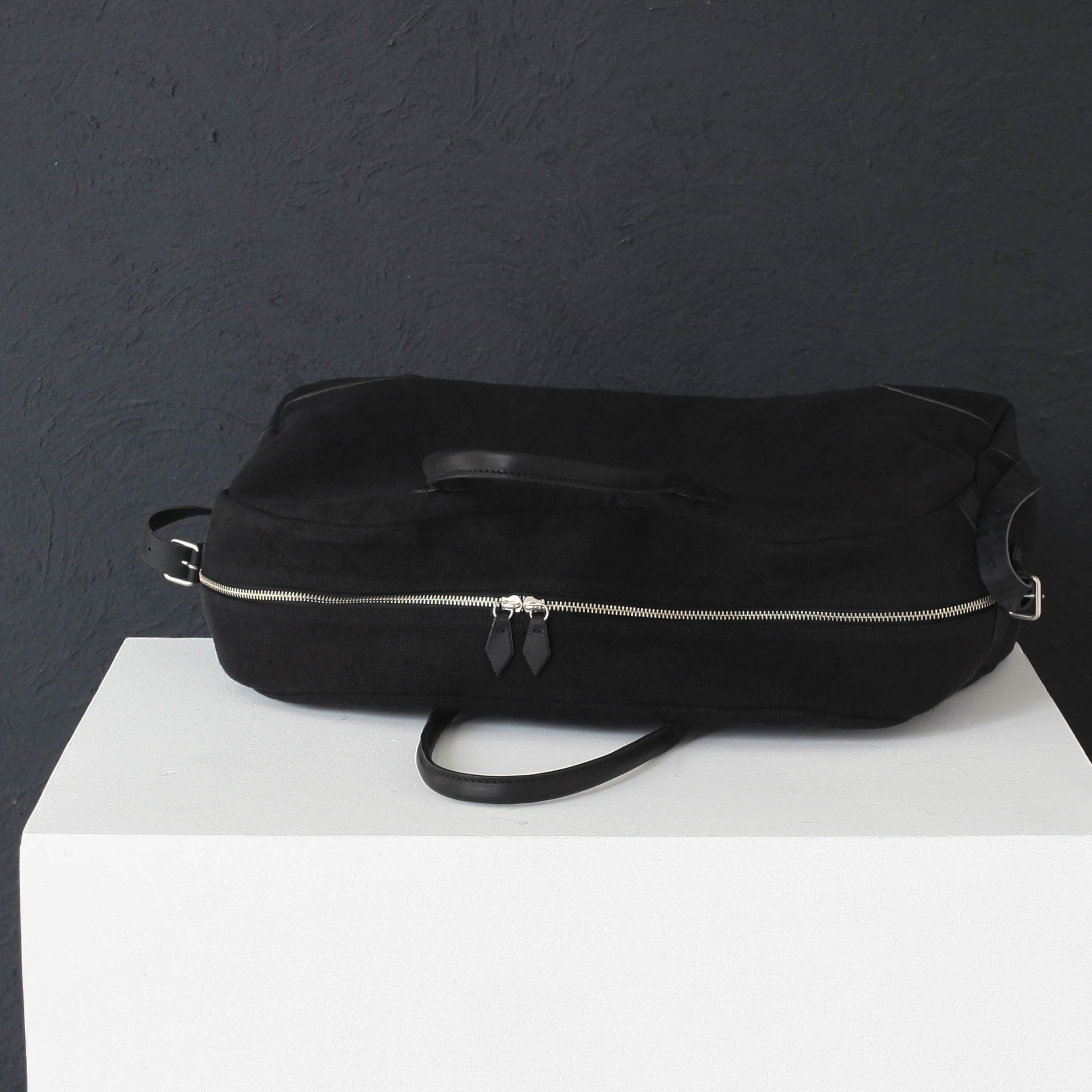 手縫いのハンドルは手に当たる違和感が全くなくなるまで丁寧に磨き上げ、肩紐の内側はスウェードで滑りにくく仕上げています。