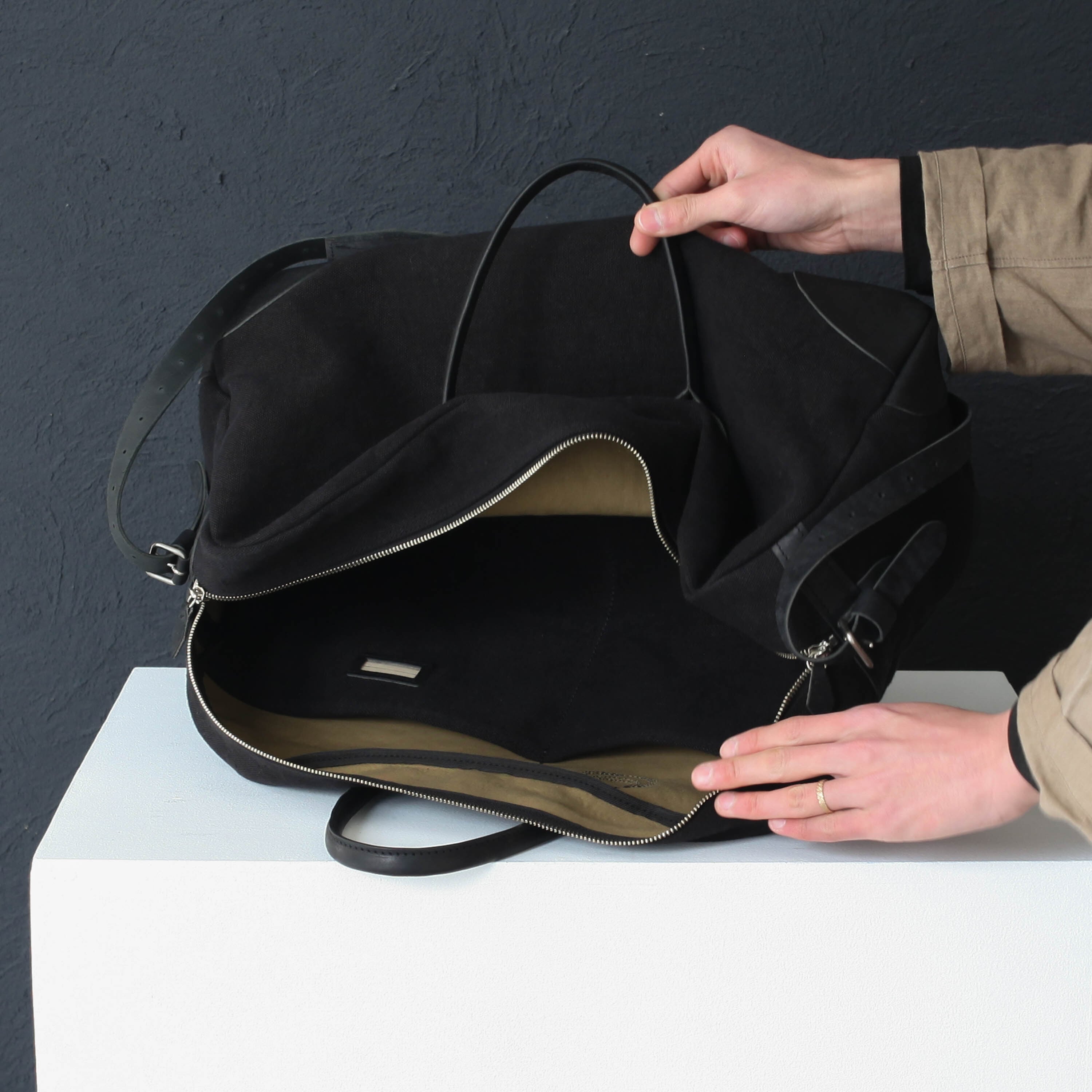 革はイタリアの最高級レザー、布は絵画のキャンバスにも使われる麻布を使用しています。