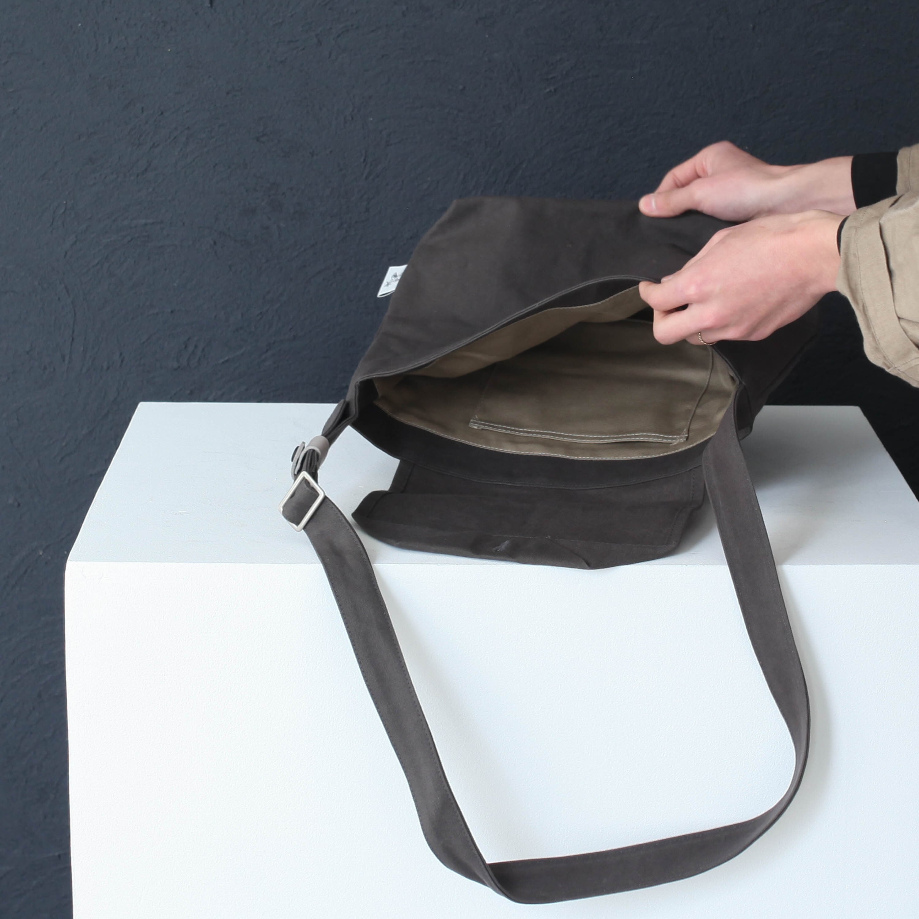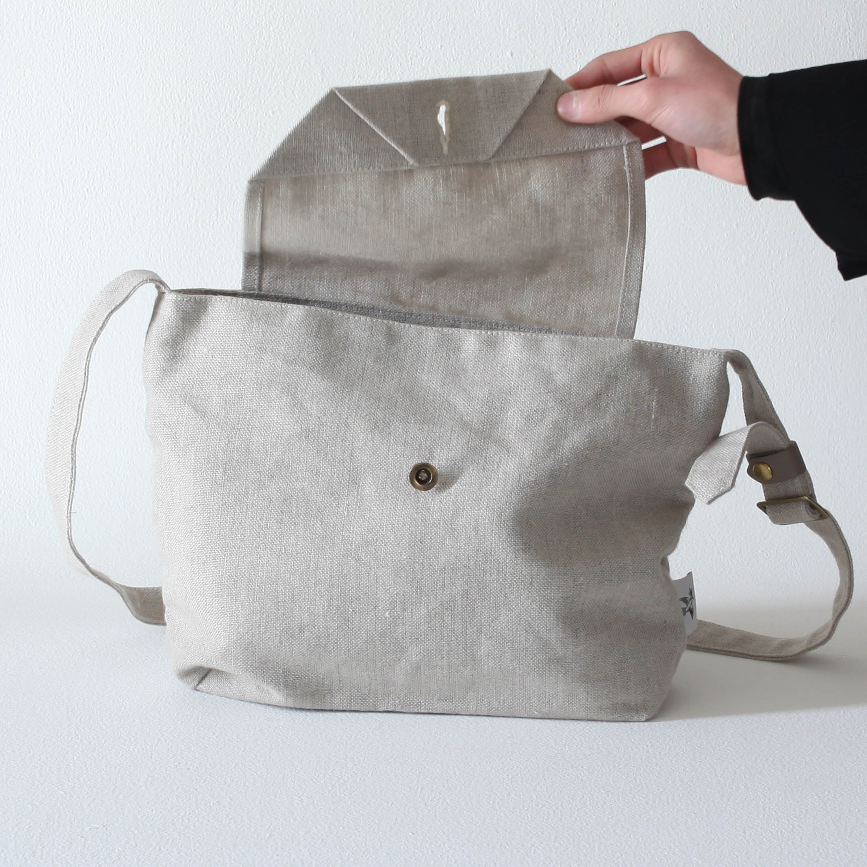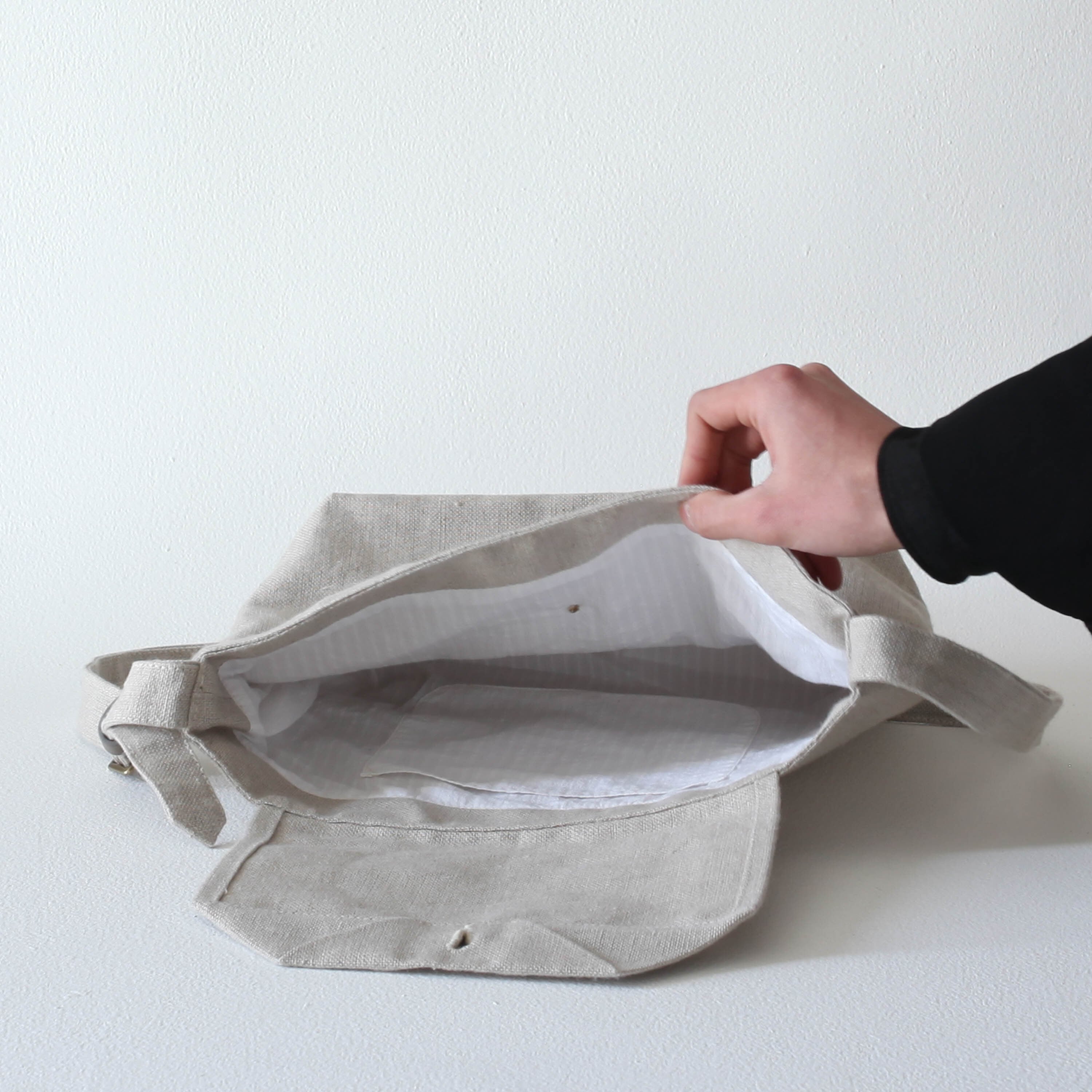 白は絵画のキャンバスにも使われる麻布、グレージュはコットンの帆布が使われています。