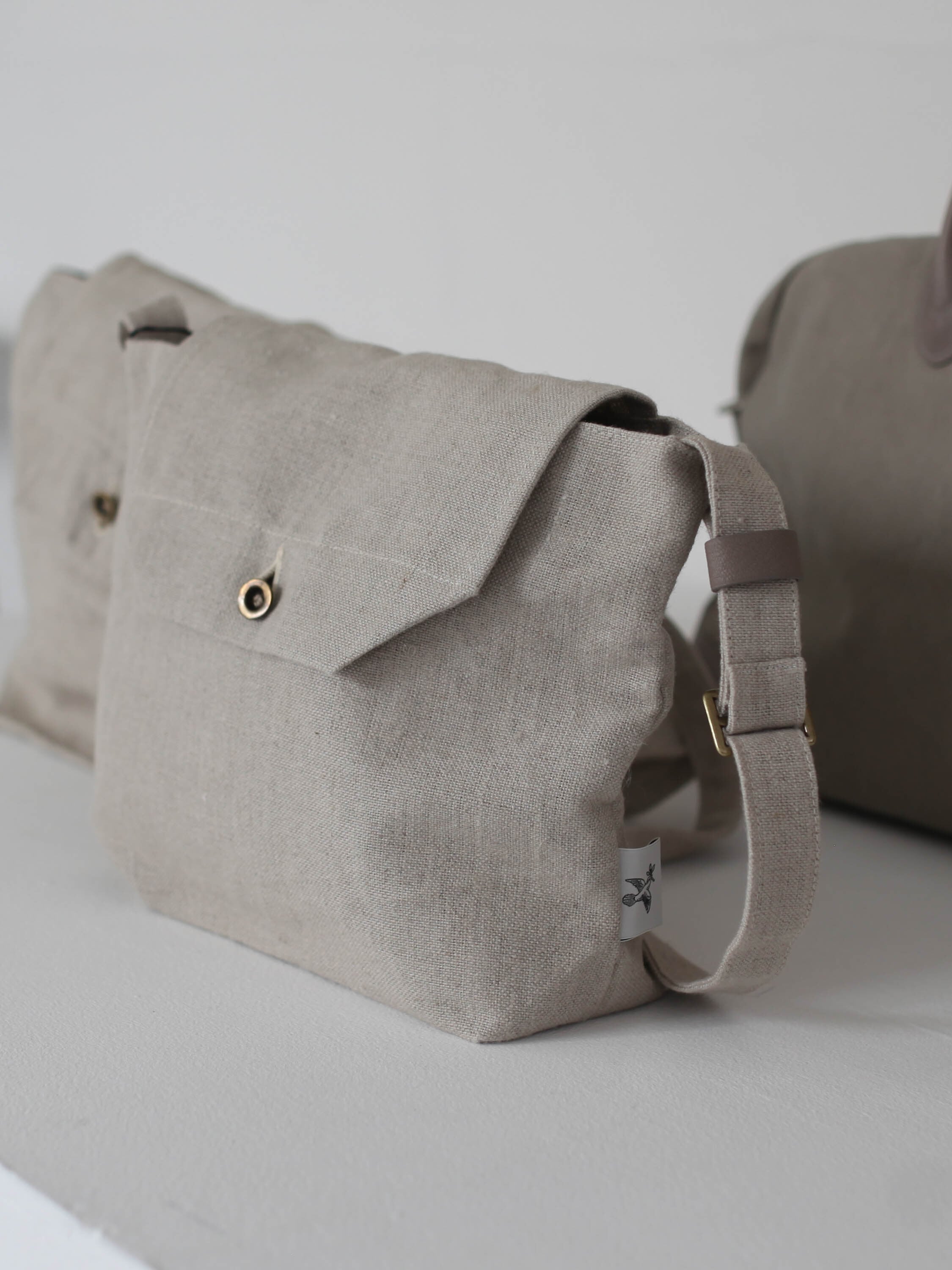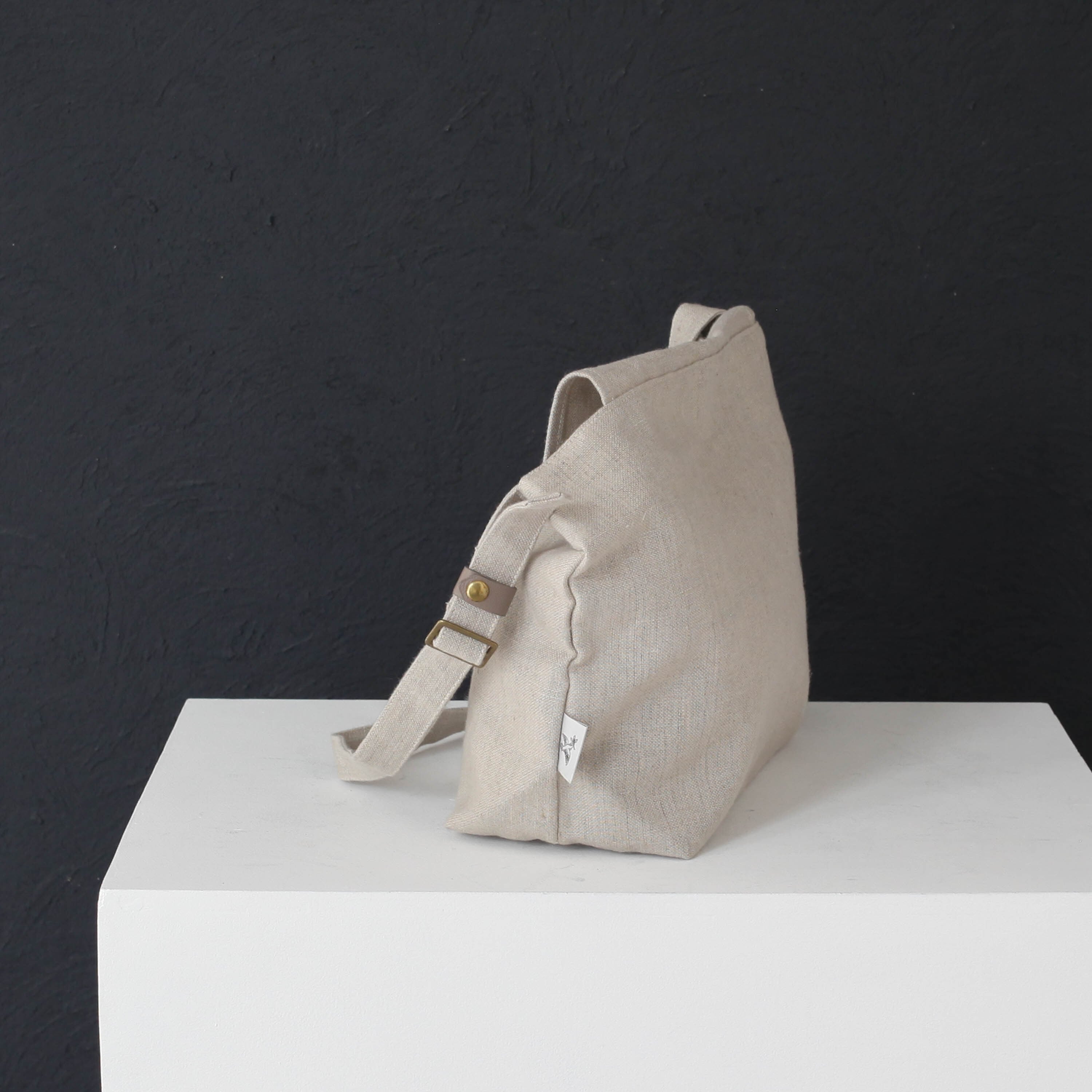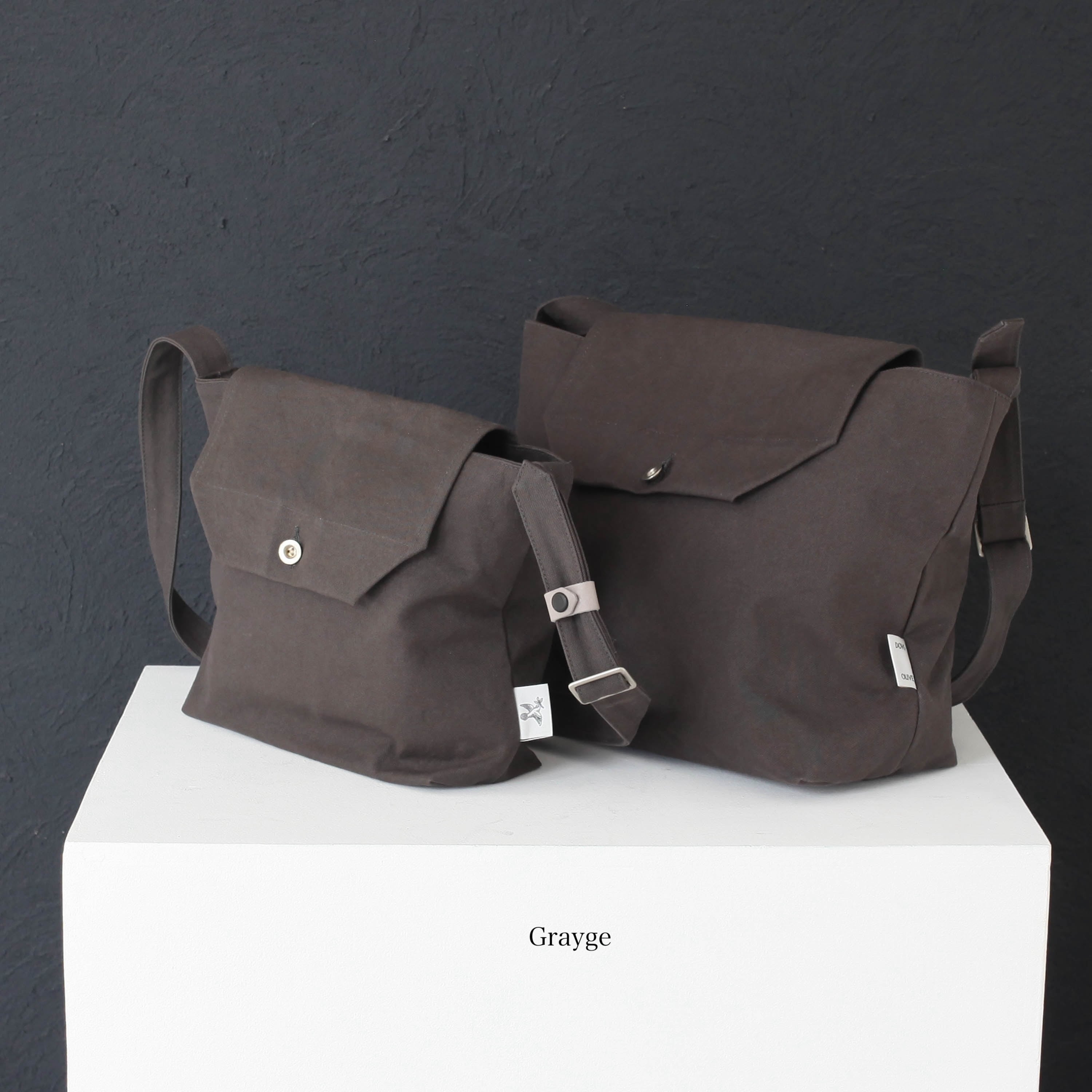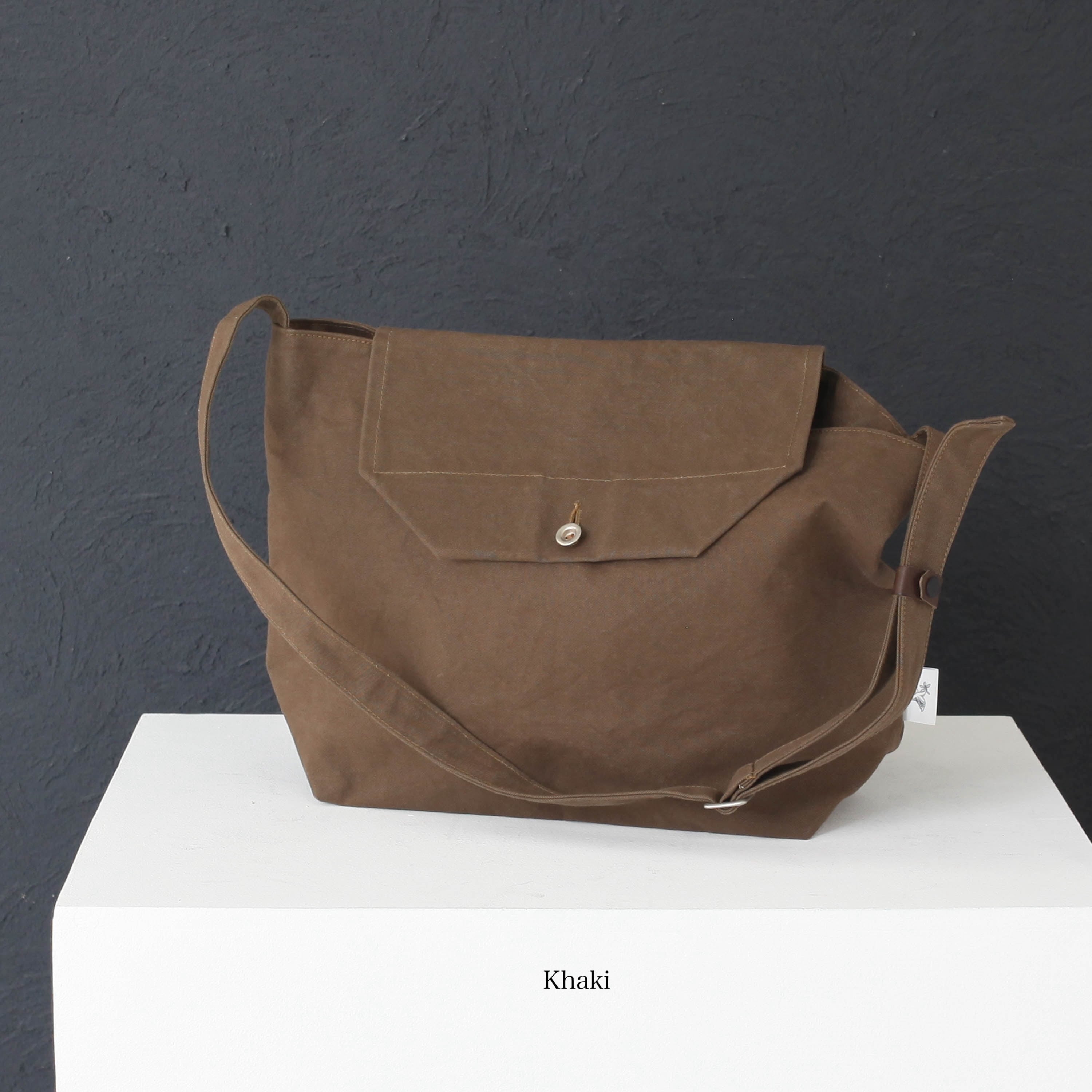 白は絵画のキャンバスにも使われる麻布、カーキ、グレージュはコットンの帆布が使われています。