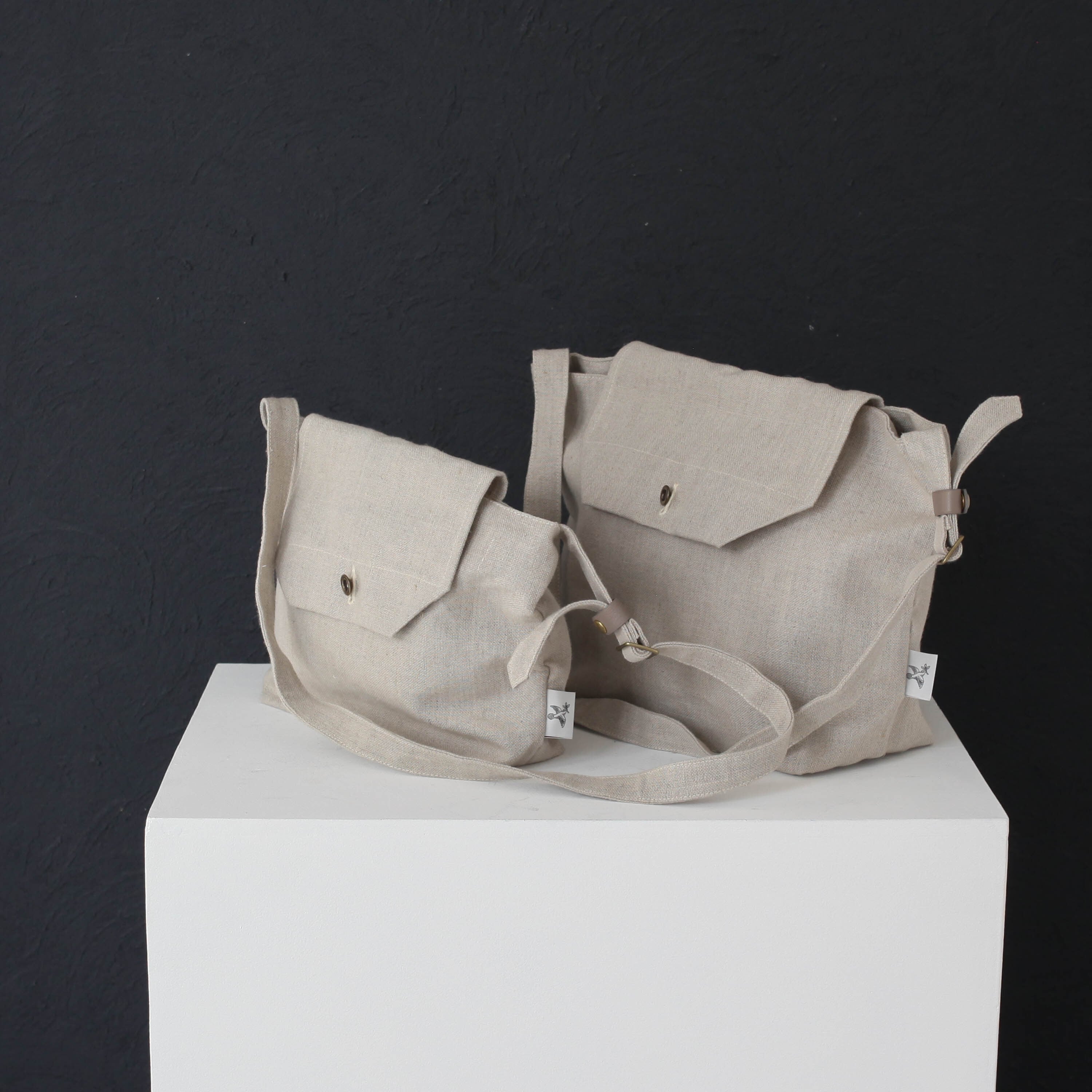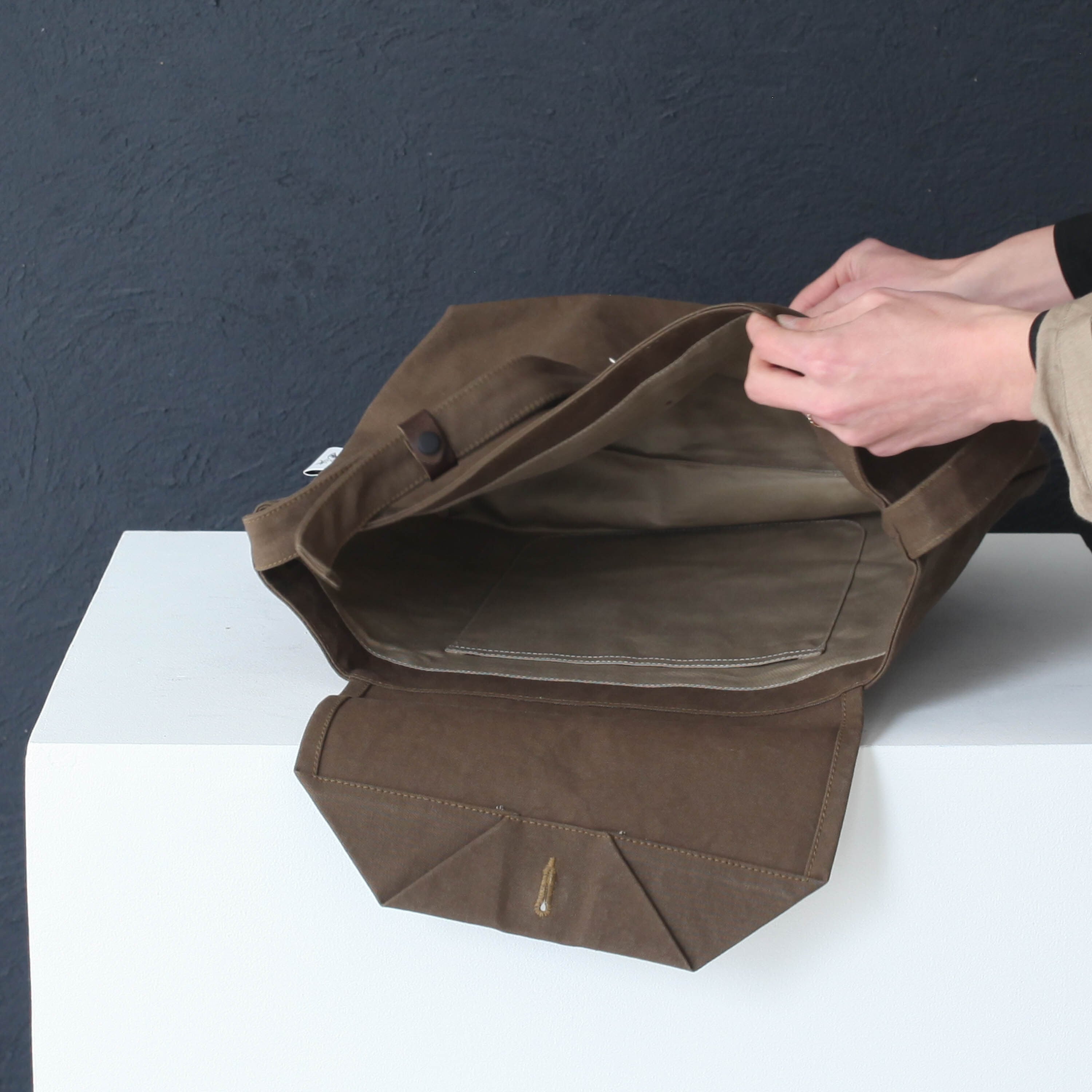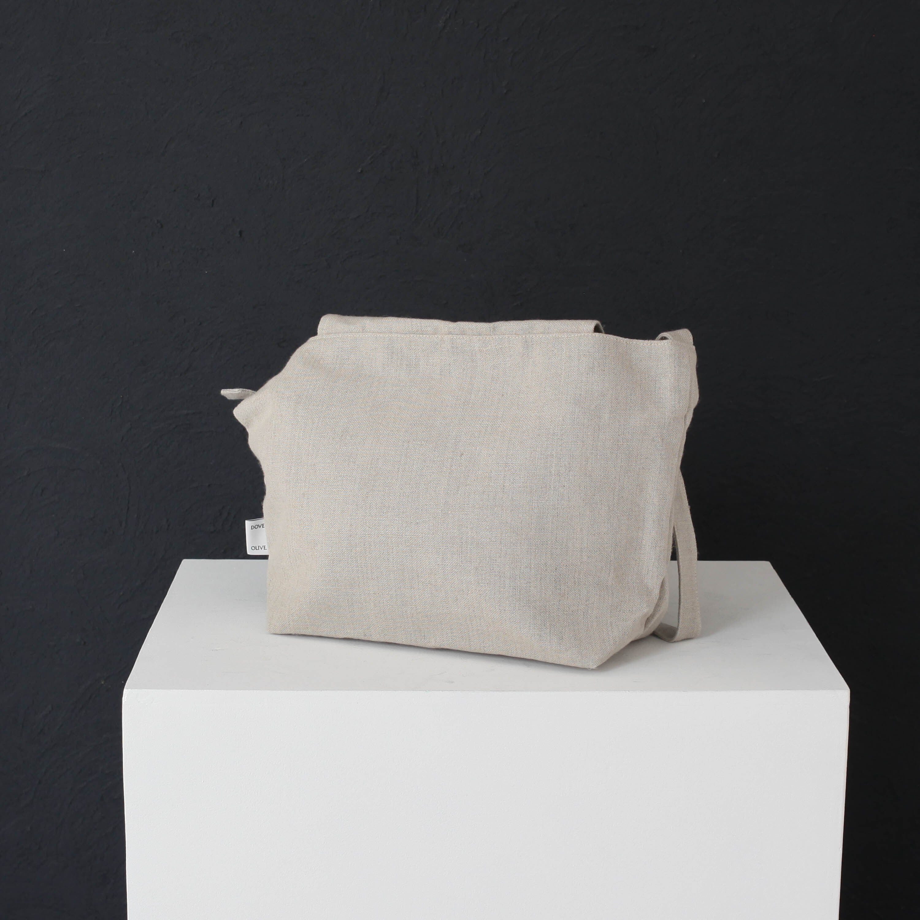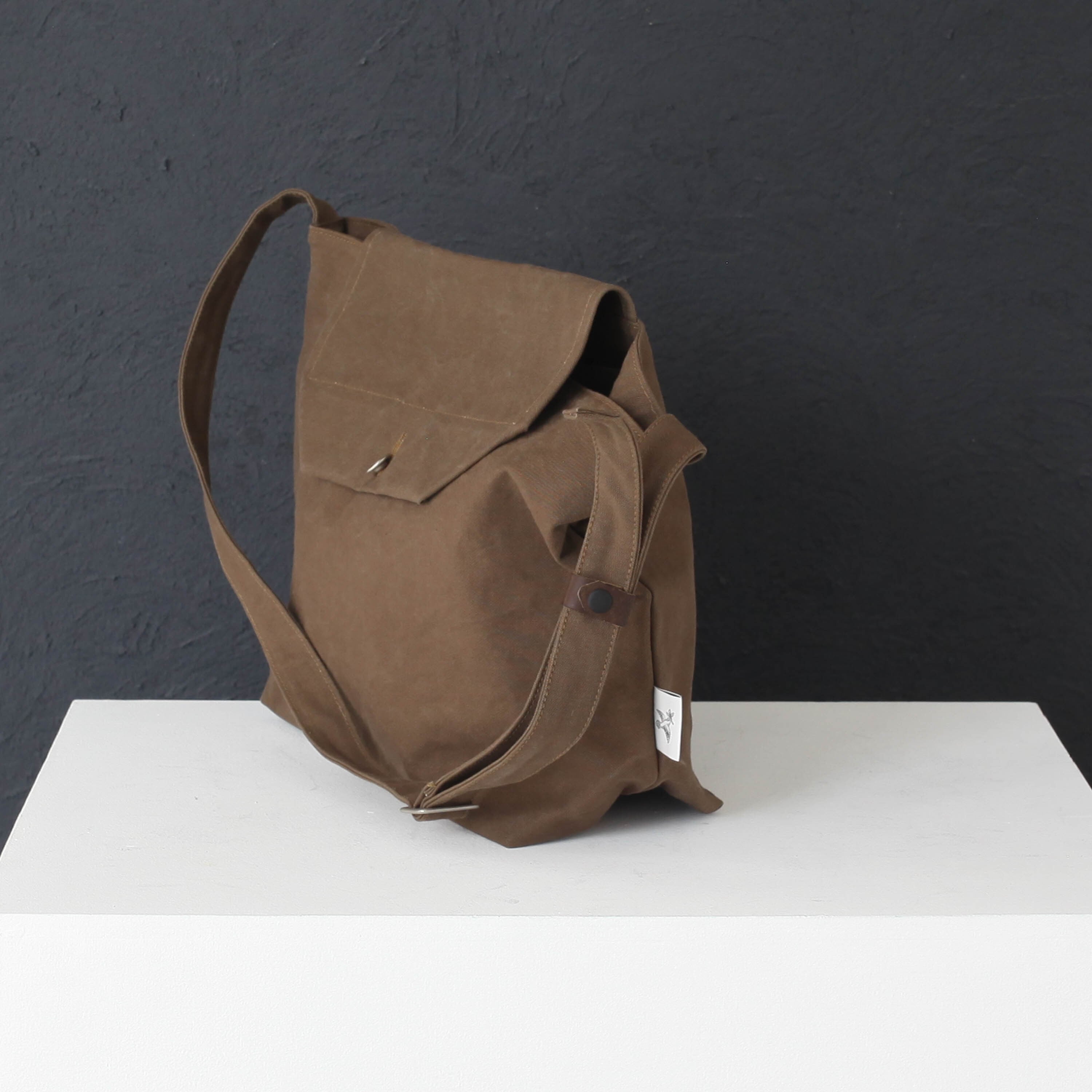 白は絵画のキャンバスにも使われる麻布、カーキ、グレージュはコットンの帆布が使われています。