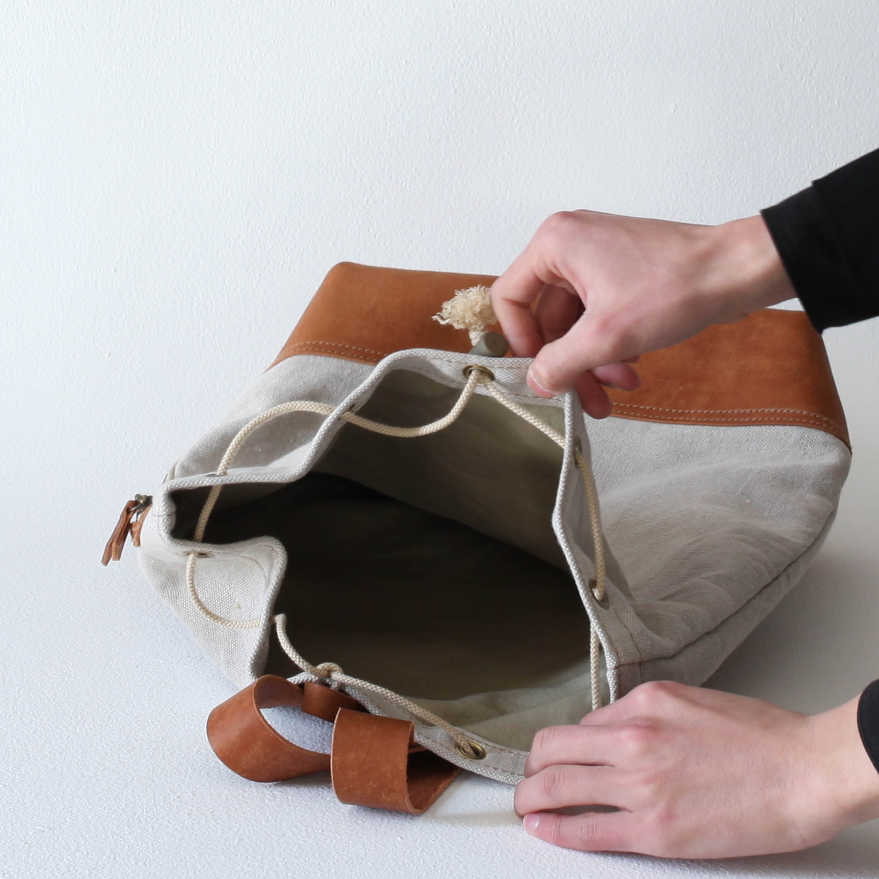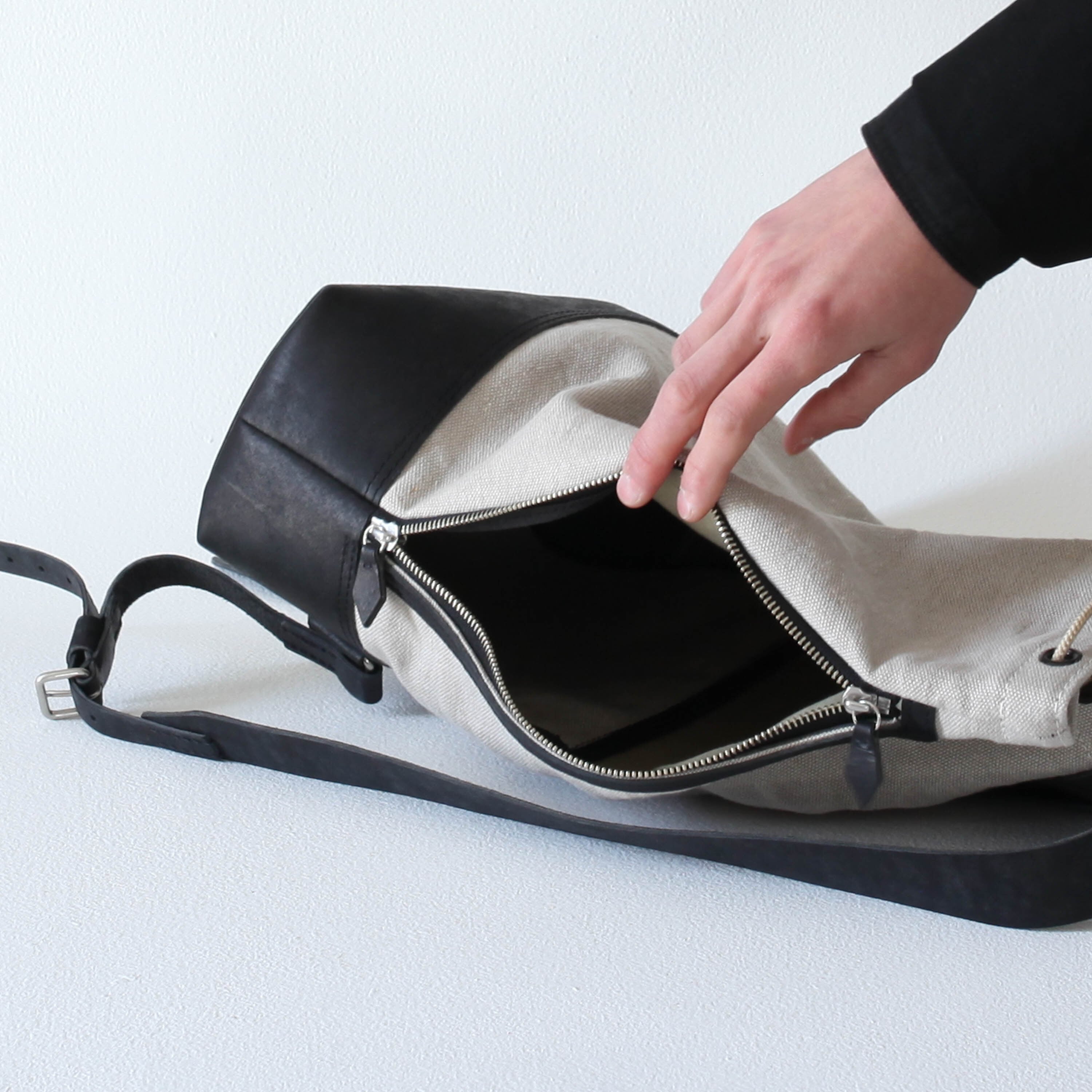 革はイタリアの最高級レザー、布は絵画のキャンバスにも使われる麻布を使用しています。