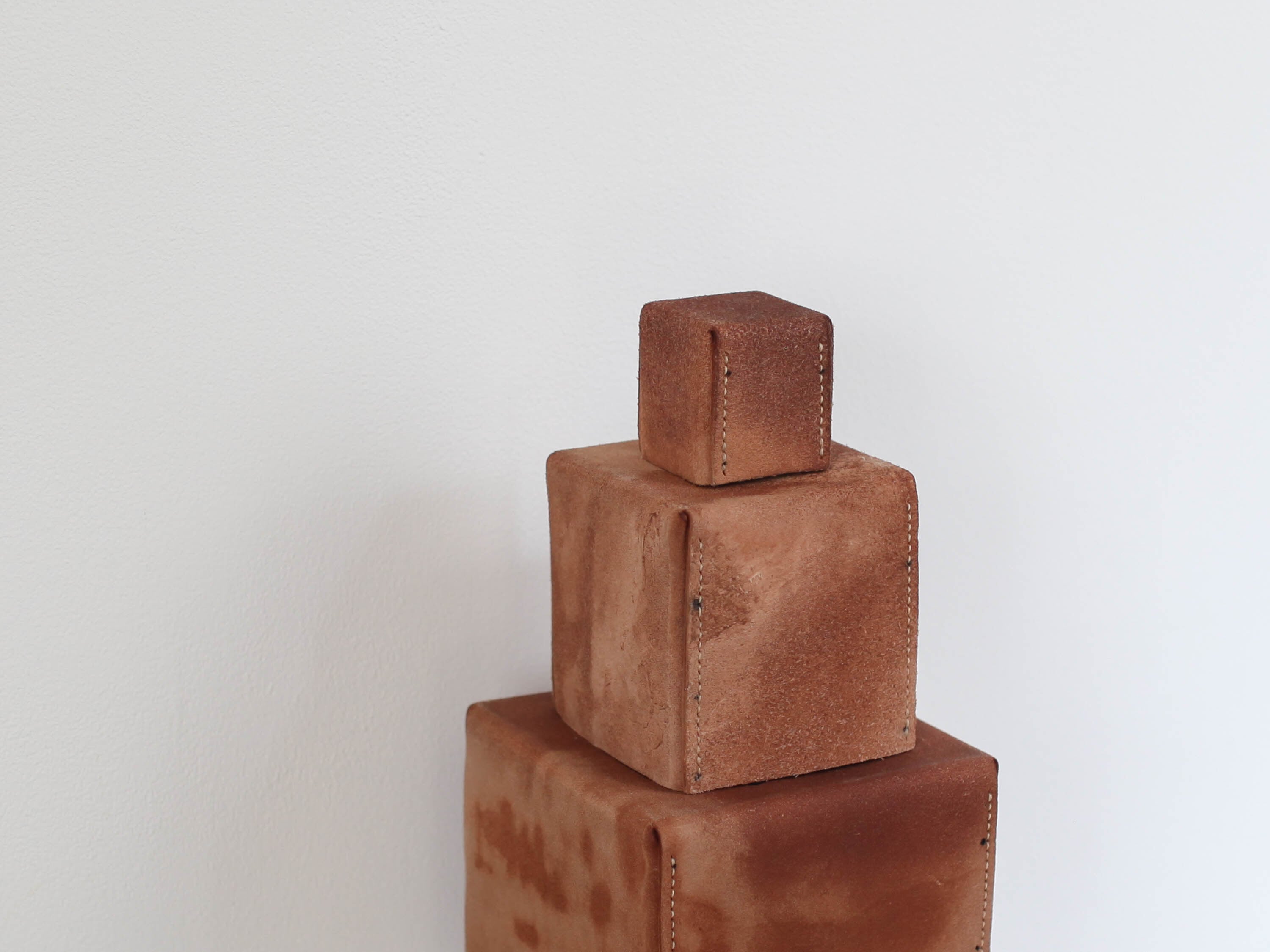 今展覧会では革の作品と絵画作品、インスタレーションの同時展示を行います。