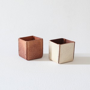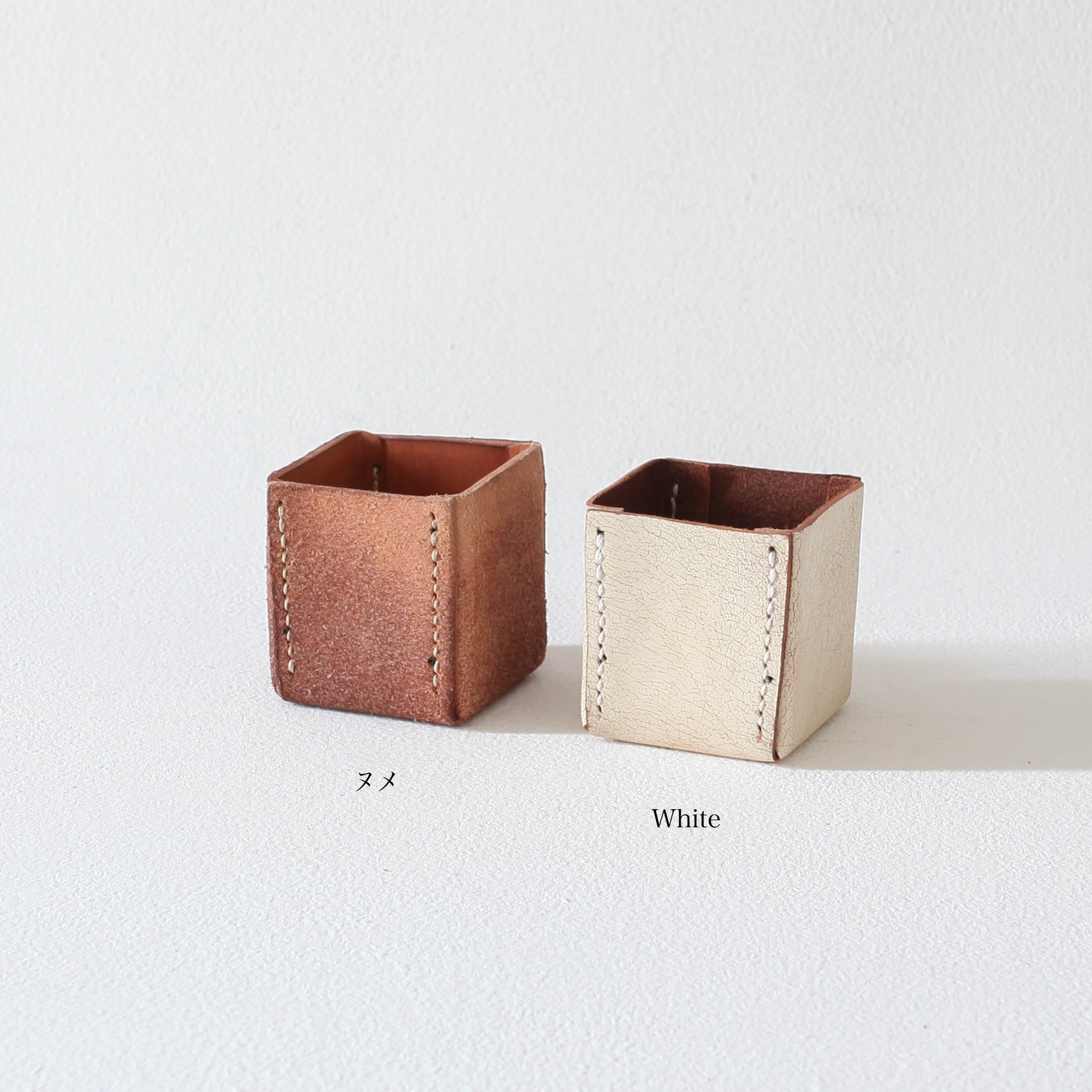 国産の無染色の牛革(ヌメ)の裏地と脱色した白の革が使用されています。