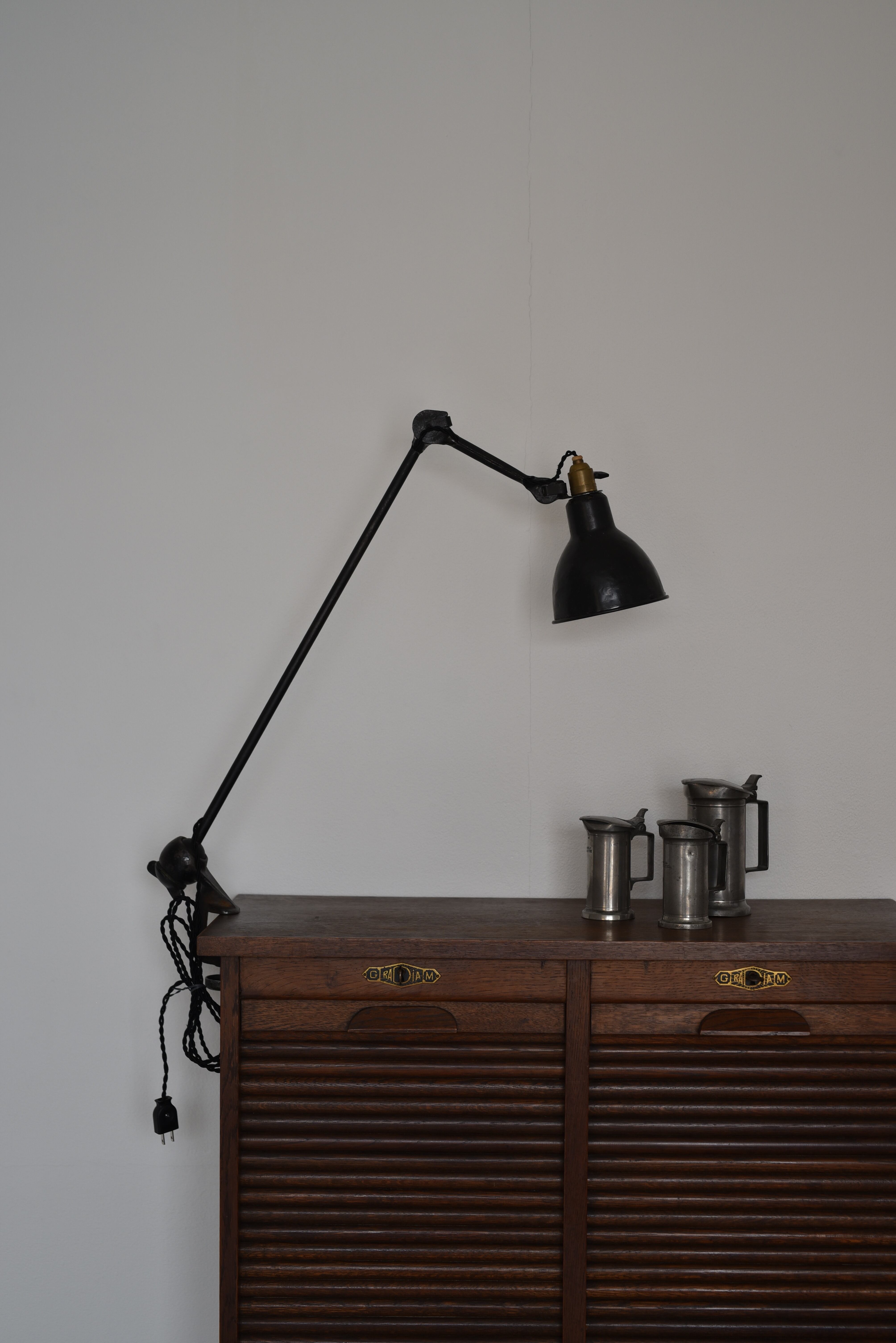 基本構造にネジや溶接を一切使用しない独自の構造を備えたGras。いち早く、そのモダンさと革新的なデザインに魅了されたのは建築家、ル・コルビュジエ。自身のアトリエでこのランプを採用し、図面とむきあったと言われています。