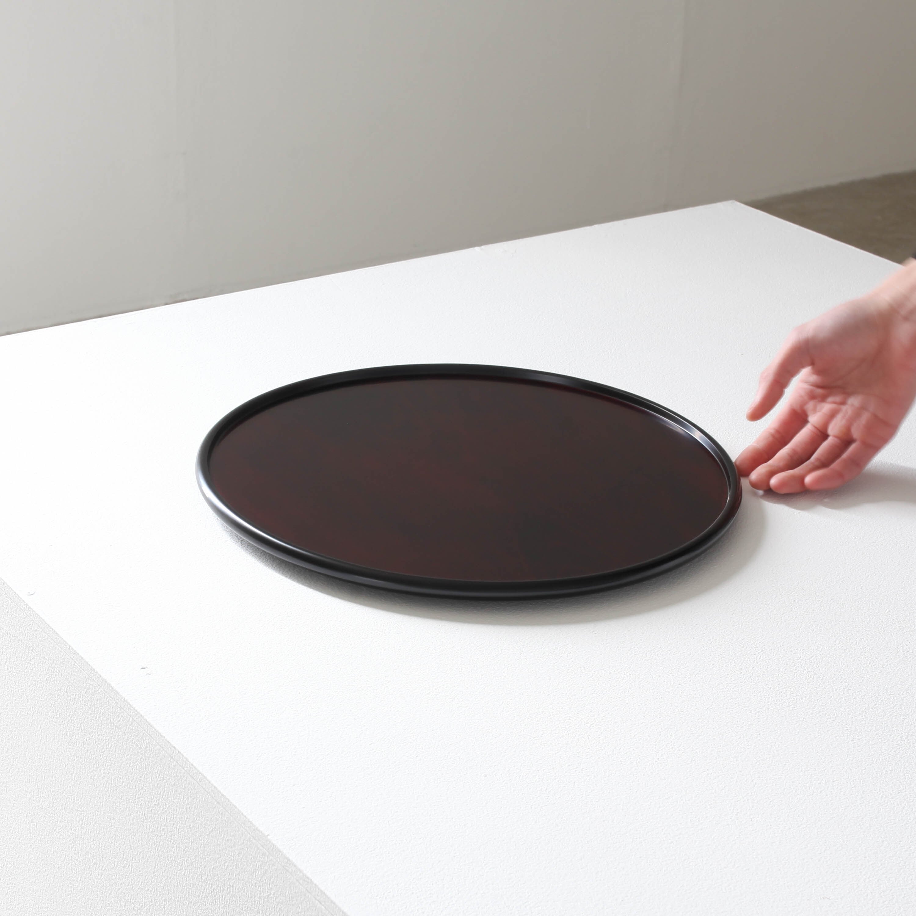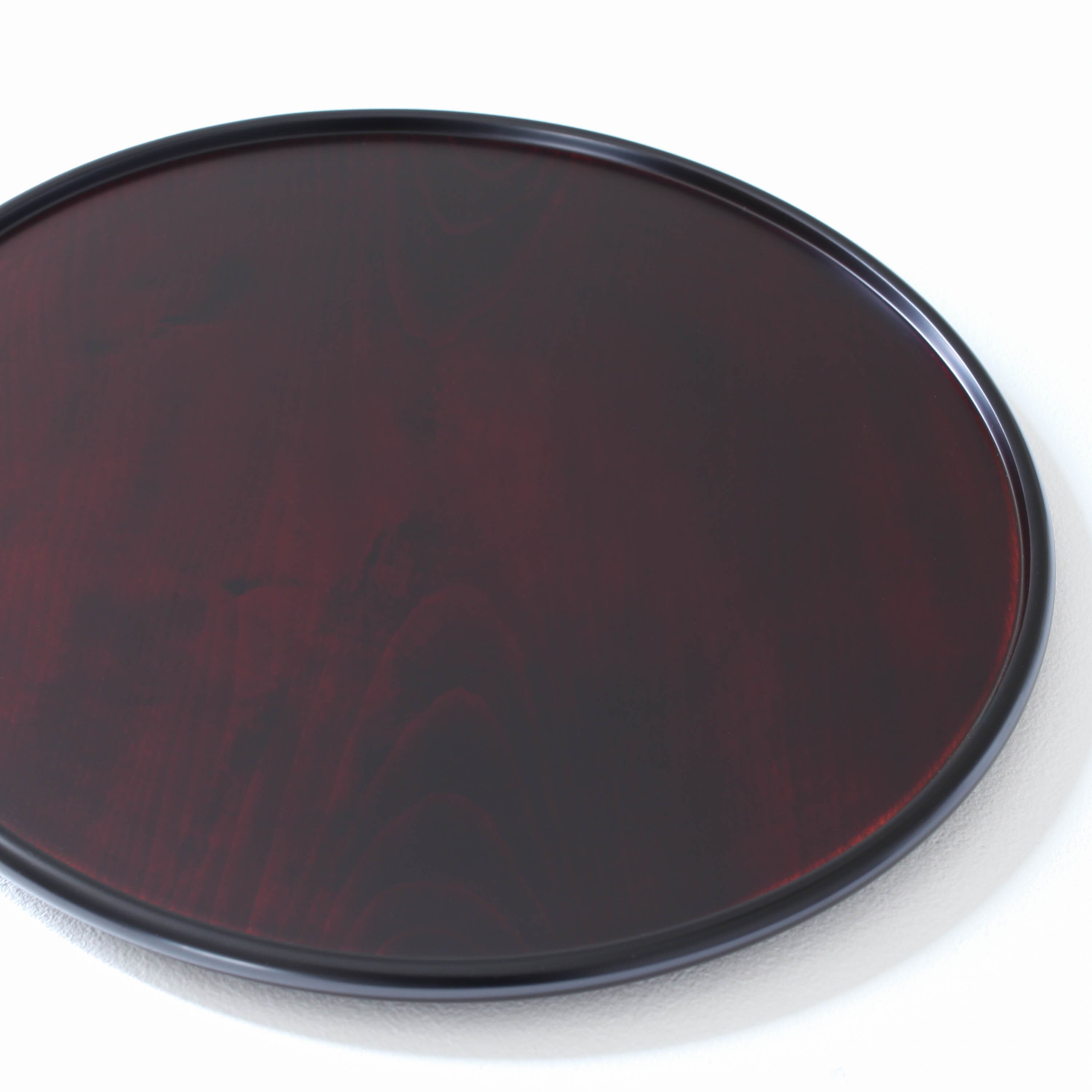 木地が透けるように、朱漆、黒漆の順に塗り重ねた作品です。