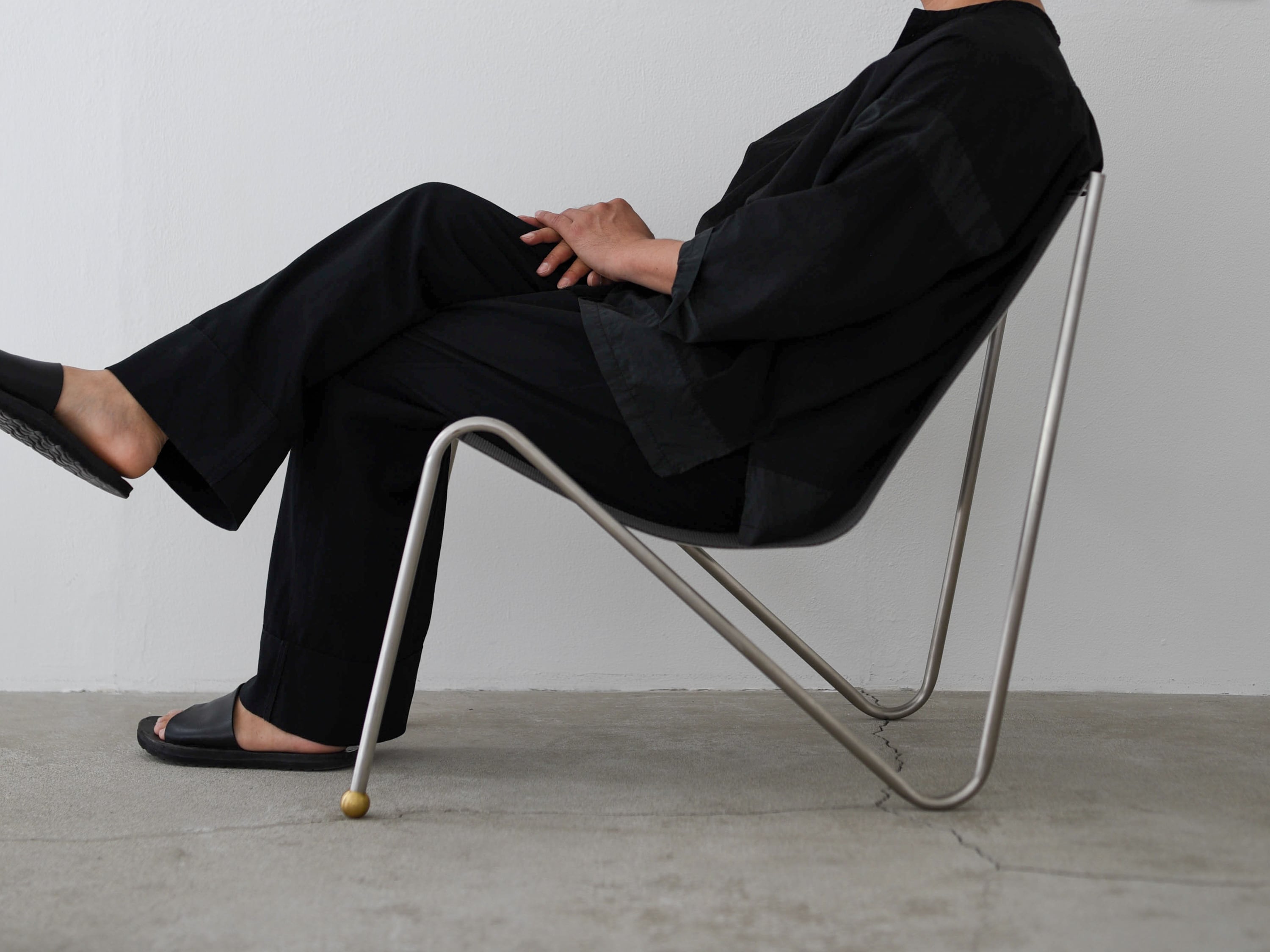 溶接跡はできるだけ磨きをかけるなど、細かな部分にも気を配られた椅子となります。