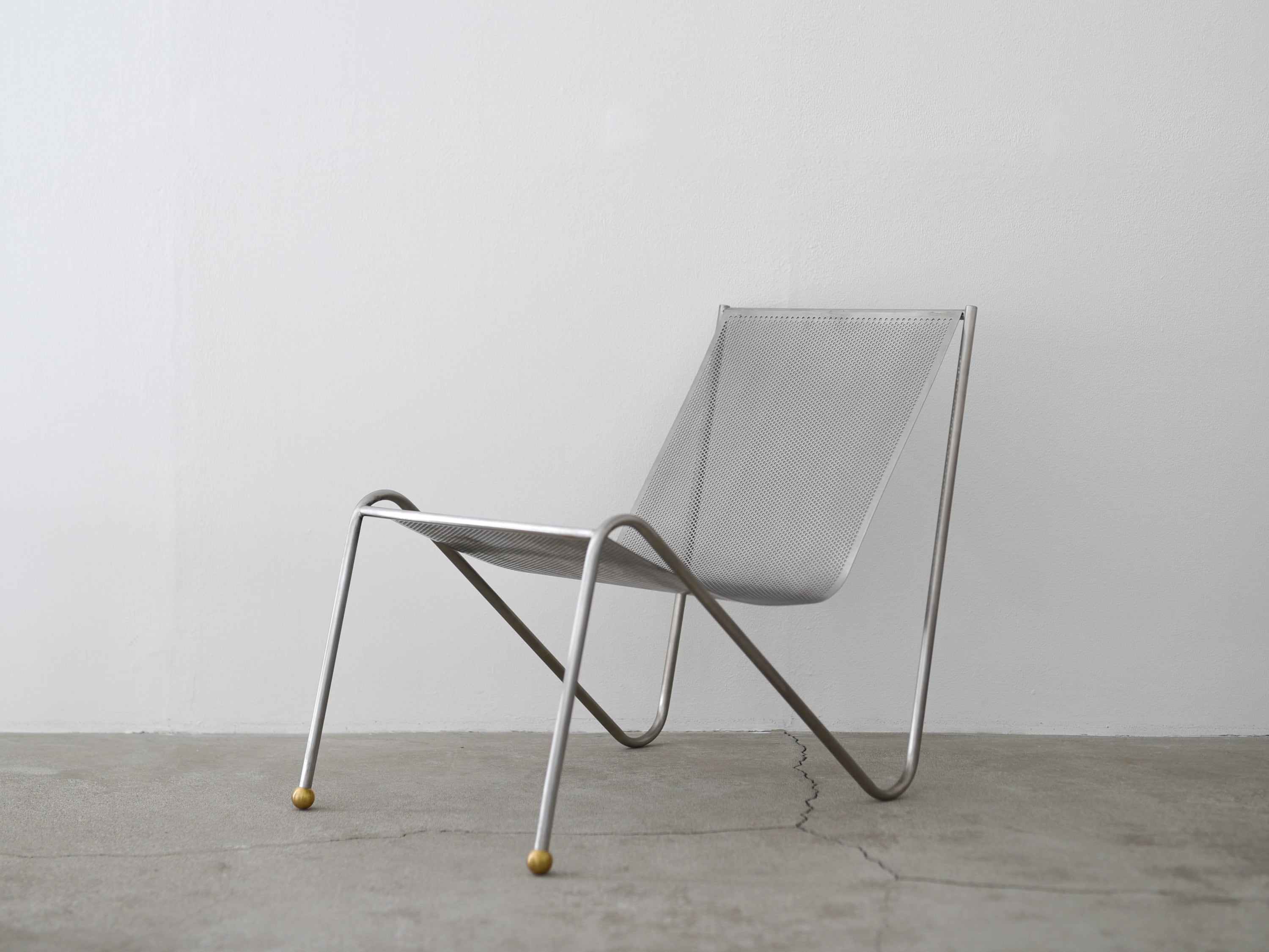 パンチングメタルを曲げた座面から背もたれは計算されたしなり具合が心地良い。